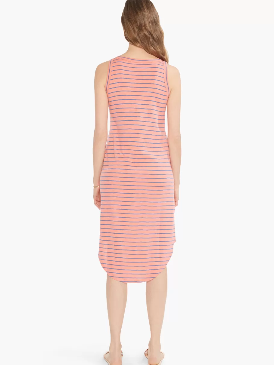 A Classic Striped T-Shirt Dress That’s Perfect For Days Spent By The Water, Or At Least Cultivating Beach Vibes. Made From A Cotton Modal Blend That’s Breezy And Super Drapey, We Included Pockets At The Side And Placed Stripe Detailing At The Collar And Arm Openings. Sleeveless With A Hem That’s Slightly Shorter At The Sides For More Shape. Full Length And Designed To Fall Below The Knee.