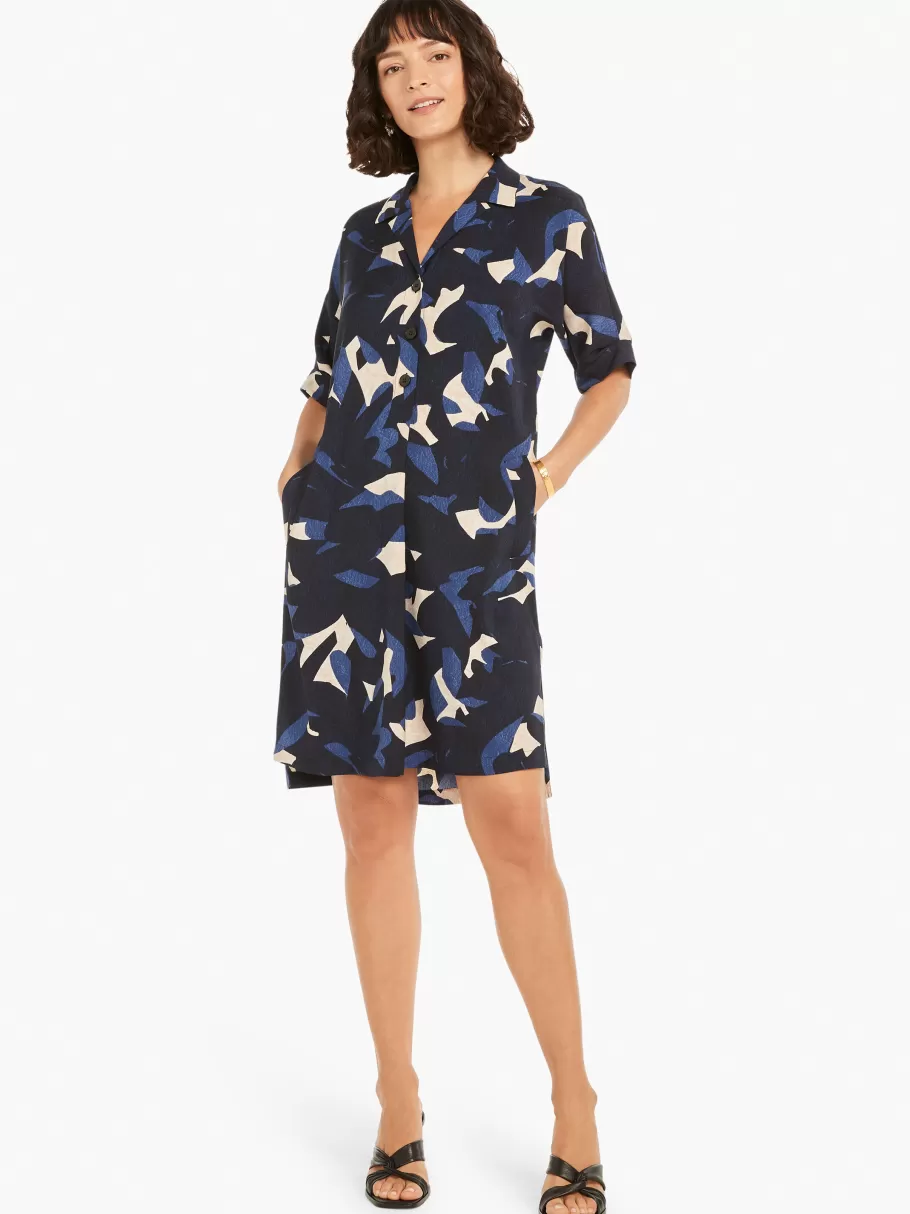 Would You Believe This Is Actually A Floral? It May Look Like Modern Art At First Glance, But The Print Is Actually A Super Zoomed-In Print Of A Flower, Super-Imposed On Itself Many Times. A Helpful Piece Of Behind-The-Scenes Trivia To Have On Hand When You Catch Someone Staring. An Easy Pullover, The Shape Is A Relaxed A-Line Silhouette With Elbow Sleeves, A Shirt Collar, And Functional Front Pockets.