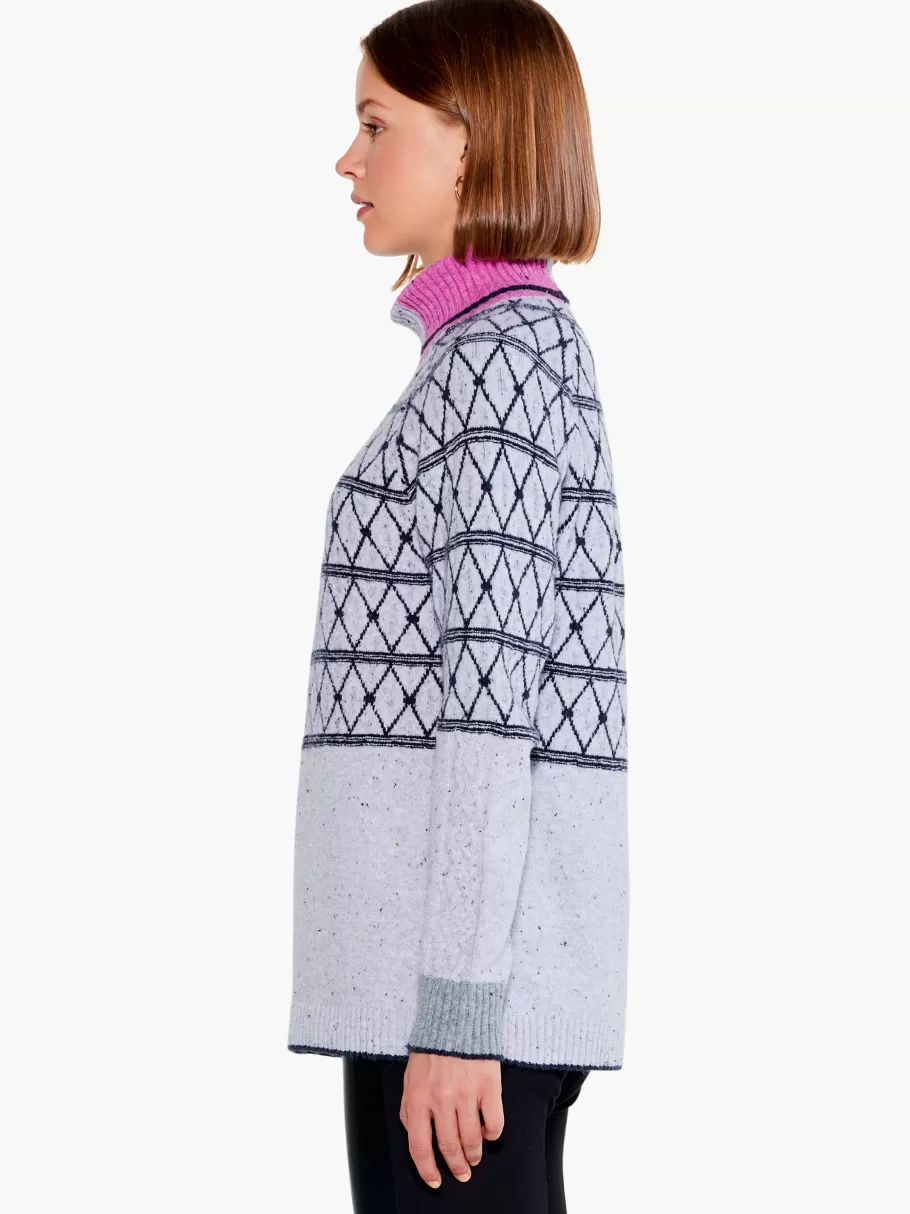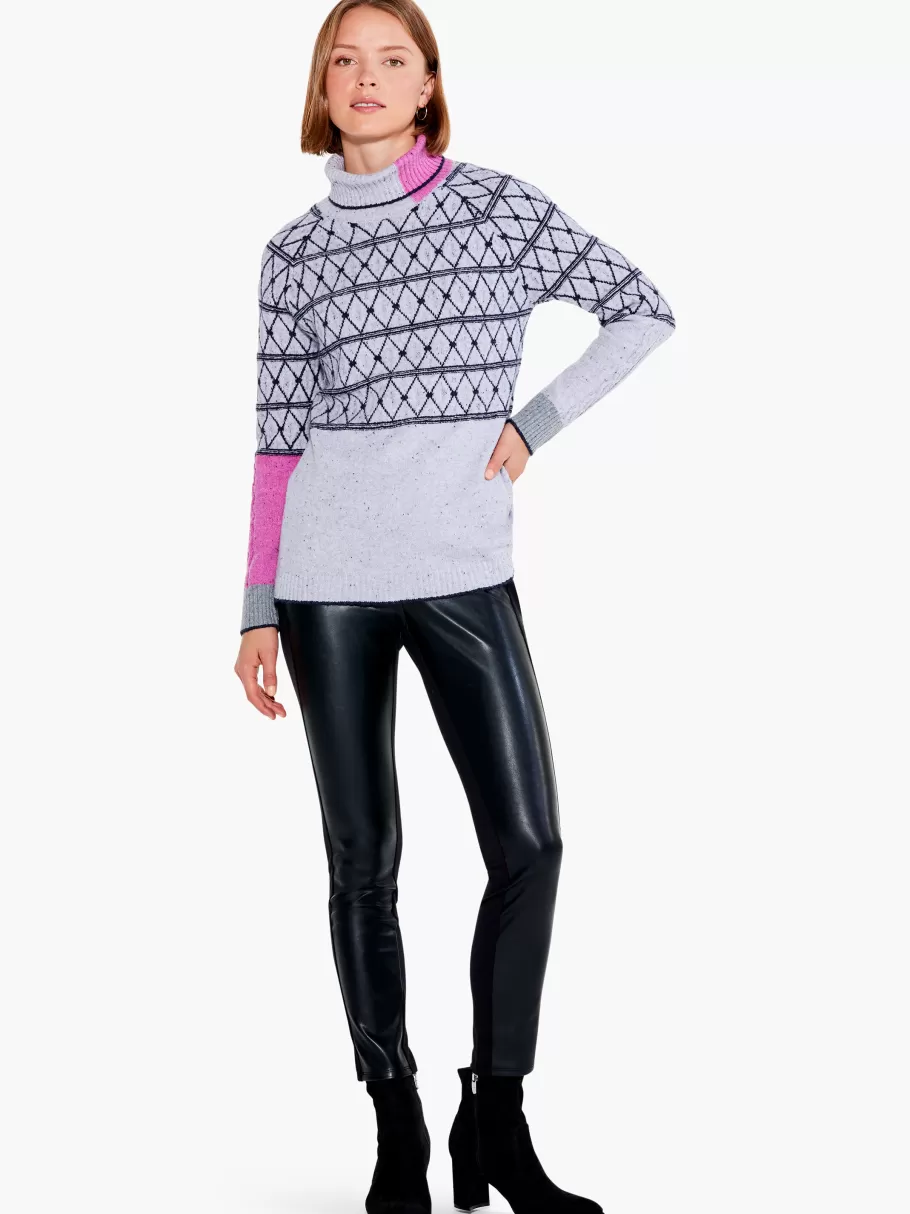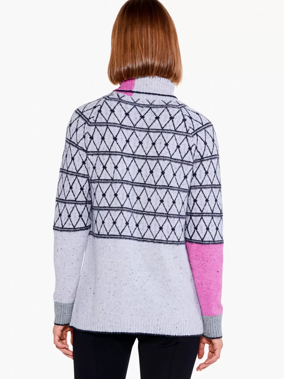A Little Geometry Goes A Long Way In Making A Knitwear Statement. We Love The Textural Details On The Sleeve And The Asymmetrical Flashes Of Pink That Add To The Modern Look Of This Sweater We’Ve Packed With Classic Comfort. An Oversized Ribbed Turtleneck Adds Feel And Flair To The Easy Midweight Silhouette. Sits At The Hip.